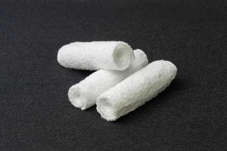 触った瞬間ほっとするおしぼり。ボリュームがあり、高級感漂う純白タイプ