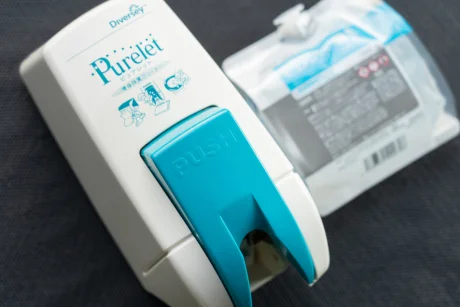 便座の除菌・清掃に使用するディスペンサーと詰め替え用パウチ