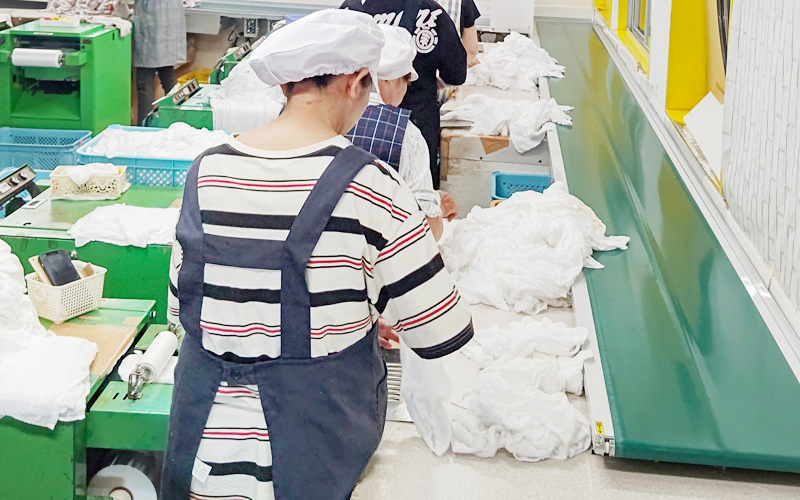 弊社の最大の特徴は、徹底した衛生管理体制です。厚生労働省の指導基準に基づき、80℃以上の熱湯消毒と専用洗剤を用いた洗濯を全工程で行っています。