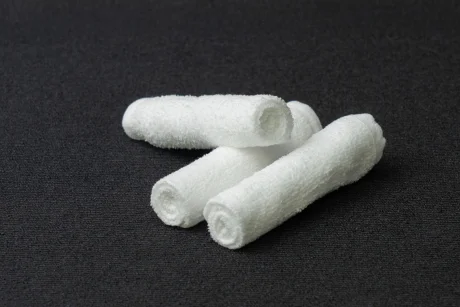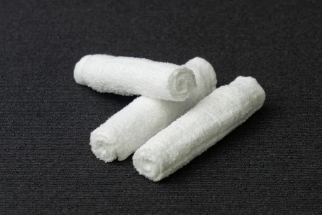 触った瞬間ほっとするおしぼり。ボリュームがあり、高級感漂う純白タイプ